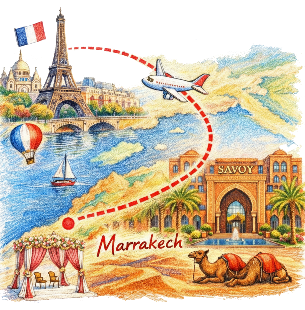 Nous sommes impatients de vous retrouver à Marrakech pour célébrer notre mariage.